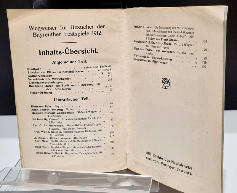 und vieles mehr mit zahlreichen Abbildungen und Annoncen, einem gefalteten Sitzplan und gefaltetem Stadtplan der Stadt Bayreuth.